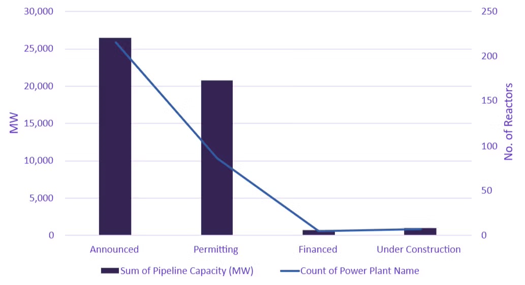 Global SMR projects pipeline as of 2025 (MW, number of reactors). Source: GlobalData.