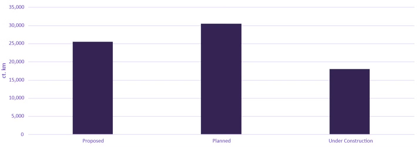 Global HVDC projects pipeline as of 2025 (ct. km). Source: GlobalData.