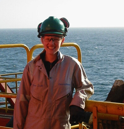 Kine Årdal on an offshore platform off the UK coast. Credit: Kine Årdal, 2004