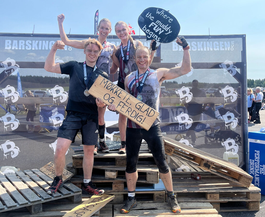 Kine Årdal and her family after completing an obstacle course race together. Credit: Kine Årdal, 2025