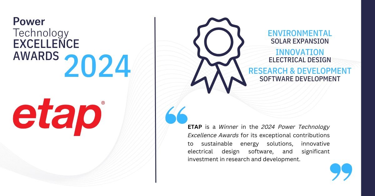 ETAP is headquartered in the USA and is a Triple Category Award Winner in the 2024 Power Technology Excellence Awards